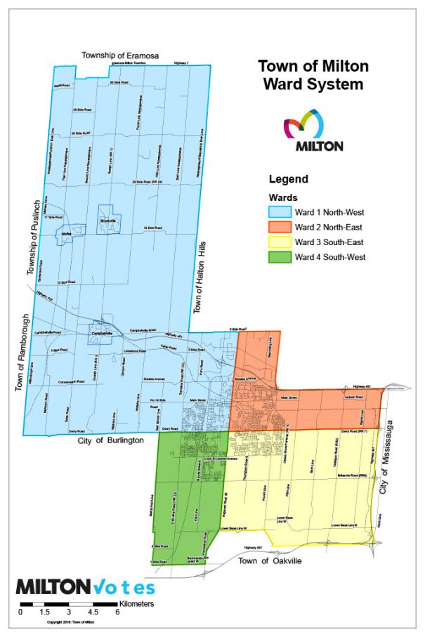 This helpful map shows you where each Ward in Milton is located FM101 from www.orangevilletoday.ca